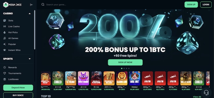 3. MegaDice — Best UK Online Casino for Crypto Bonuses